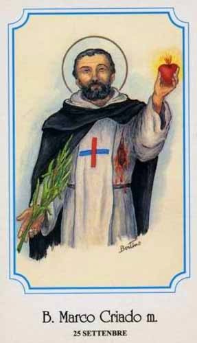 Saint of the Day – 25 September – Blessed Marco Criado OSsT (1522-1569) Trinitarian Priest and Martyr, renowned Preacher, Missionary. Born as Marcus Criado Guelamo on 25 April 1522 in Andujar, Spain and died by being stoned to death on 25 September 1569 (aged 47) near La Peza, Spain. Also known as – Marco Criado Guelamo, Marco Guelamo, Mark.