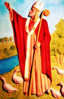Baudolino is called “man of wonderful sanctity,” he was a Hermit, gifted with the gift of miracles and prophecies and lived in Foro (now Villa del Foro, a Town on the bank of the Tanaro, near Alessandria). Legend has it that geese, deer and other animals would gather around him to listen to him in his hermitage, therefore, he is sometimes depicted surrounded by these animals.