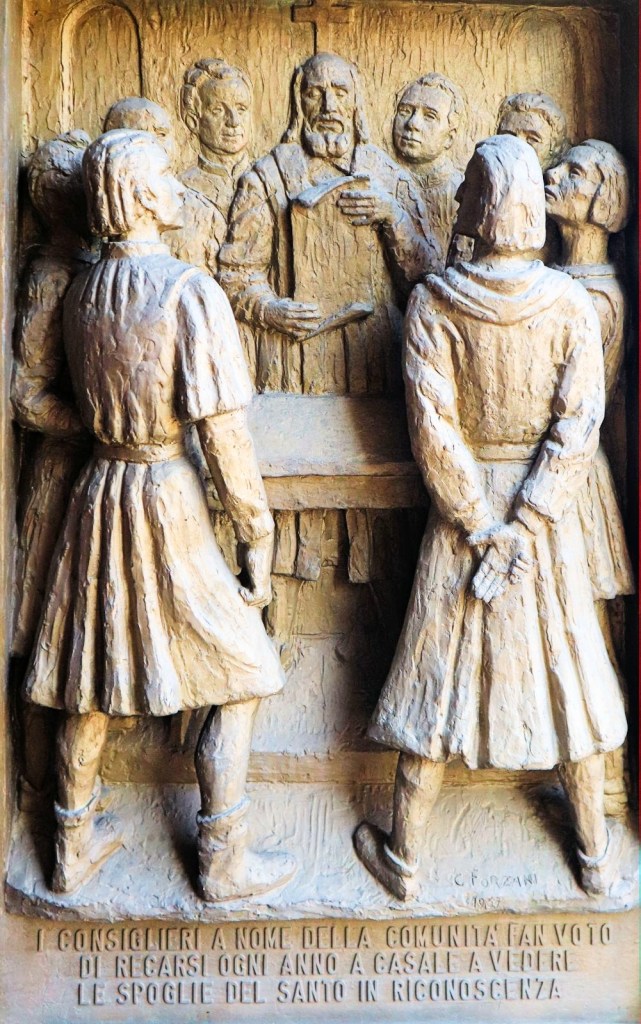 Evasius’ remains were transferred to the Cathedral in Casale Monferrato. The Diocese of Casale Monferrato was only established in 1474 by Pope Sixtus IV. Relics also came to Borgo Vercelli, where Evasius’ intercession saved the inhabitants from an epidemic.