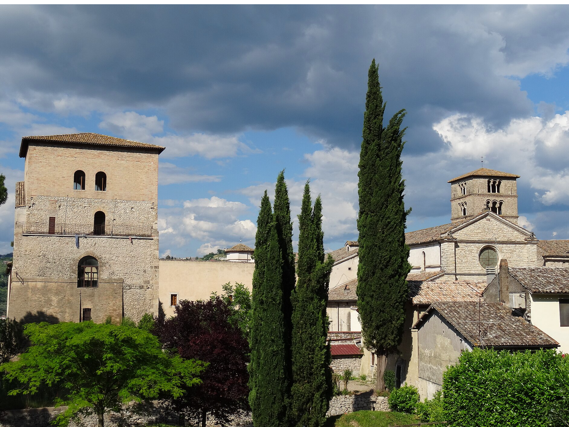The foundation of Farfa p dates to around 560-570 by St Laurence of Syria (Lorenzo Siro), who arrived from Syria together with his sister Susannah, to carry out an apostolate in Sabina, where he was elected as the Bishop but he himself soon left this position to become a Monk and dedicate himself to the foundation of this Monastery which had attracted him by the position of 3 beautiful tall Cypresses, representing the glorious Blessed Trinity..