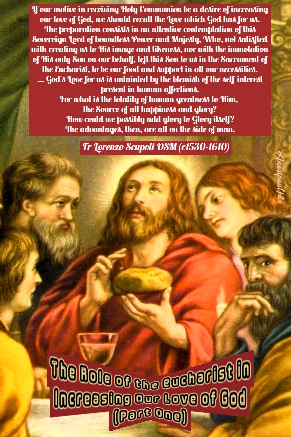 “If our motive in receiving Holy Communion be a desire of increasing our love of God, we should recall the Love which God has for us.