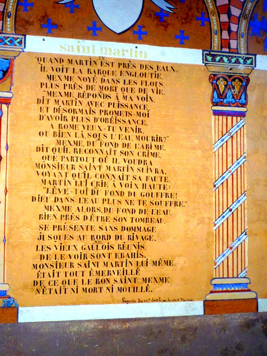 In the Church of Rivière, the legend of Saint Maximus is transcribed on three panels which are located at the Entrance to the Church, on the wall of the Pulpit, near the Confessional.