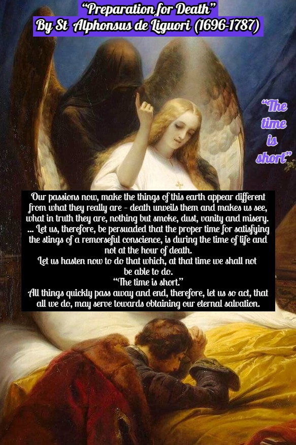 Our passions now, make the things of this earth appear different from what they really are – death unveils them and makes us see, what in truth they are, nothing but smoke, dust, vanity and misery. O my God! of what avail are riches, possessions and kingdoms, in death, when nothing is needed but a coffin and a simple robe to cover the body?