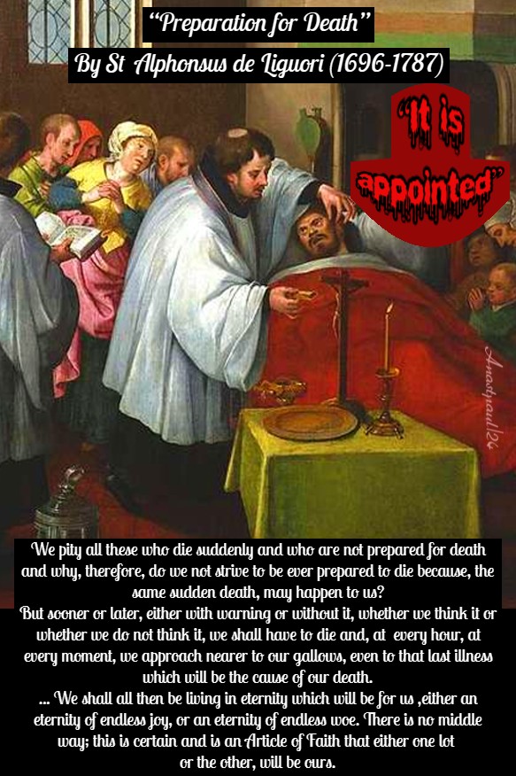 We pity all these who die suddenly and who are not prepared for death and why, therefore, do we not strive to be ever prepared to die because, the same sudden death, may happen to us?