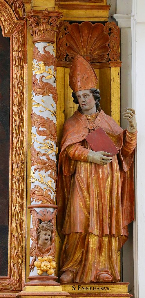 Emmeramus was a Monk and Bishop of Poitiers, left the Kingdom of the Franks at the end of the 7th Century to evangelise in Regensburg, Bavaria, where he was received with benevolence by Duke Theodo. The latter wanted to keep him as the Bishop of his territory or, at least, as the Abbot of a Monastery there.