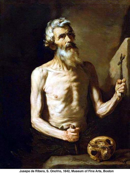The Roman Martyrology reads today: “In Egypt, St Onuphrius, an Anchorite, who led a religioys life in the desert for 60 years and renowned for great virtues and merits, departed for Heaven. His admirable deeds were recorded by the Abbot, Paphmutius.”