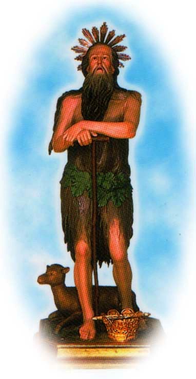 The image of St Onuphrius, a naked Hermit, covered only with his hair, was the object of figurative representation in art, in all the centuries, enriched by the many narrated details, the loincloth made of leaves, the camel, the skull, the Cross, the host with the chalice, the Angel.