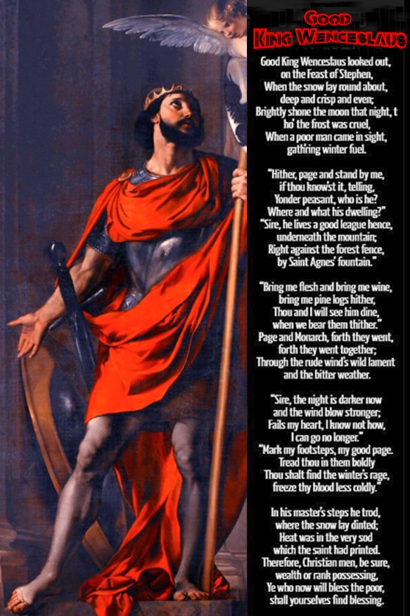 PRAYER – O God, Who through the Palm of Martyrdom transported blessed Wenceslaus from an earthly dominion unto heavenly glory, keep us, by his prayers, from all harm and grant us to rejoice in his fellowship. Through Jesus Christ, Thy Son our Lord, Who lives and reigns with Thee, in the unity of the Holy Ghost, God, world without end. Amen (Collect).