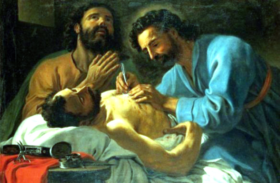 PRAYER – Grant, we beseech Thou, almighty God, that we who celebrate the anniversary of the death of Thy holy Martyrs, Cosmas and Damian, may by their intercession, be delivered from all the evils that threaten us. Through Christ, Thy Son our Lord, Who lives and reigns with Thee, in the unity of the Holy Ghost, God, world without end. Amen (Collect).