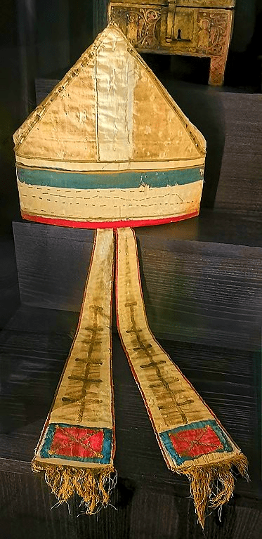 St Exuperius (Died c411) Bishop and Confessorof Toulouse, Apostle of the destitute, the poor, the deprived and needy including aid to the poor in Egypt and Palestine. , The Roman Martyrology reads today: “At Toulouse, St Exuperius, Bishop and Confessor. St Jerome bears witness to this blessed man, a memorable testimony, relating how severed he was towards himself and how gentle and liberal towards others.” Below we see our Saint’s Mitre more than 1500 years old! It is kept at the Basilica which he had completed dedicated to St Sernin A Most Acclaimed Saint: https://anastpaul.com/2024/09/28/saint-of-the-day-28-september-saint-exuperius-of-toulouse-died-c411-bishop-and-confessor/