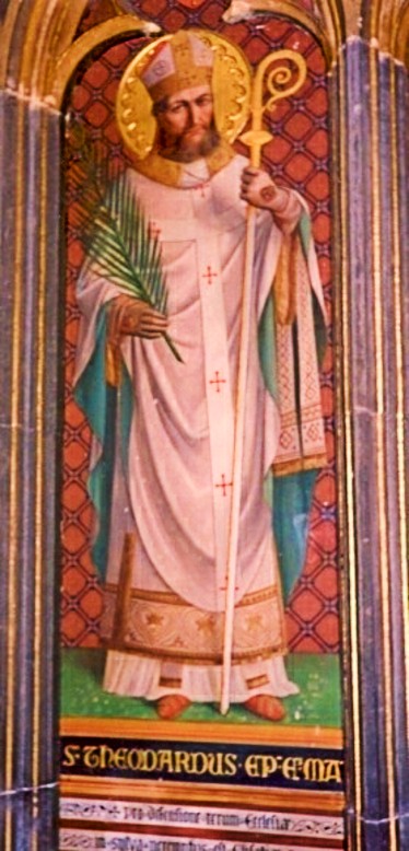 Because he was murdered on his way to defend the rights of the Church, he was honoured as a Martyr. A Chapel was built at his place of death and original burial in Rülzheim, called the ‘Dieterskirchel.’ The place became an important pilgrimage site and is one of the oldest in the Diocese of Speyer. Baronius added his name to the Roman Martyrology when it was revised in the late 1500s. Theodard is venerated as the Patron Saint of Drovers, cattle dealers and the City of Maastrict.