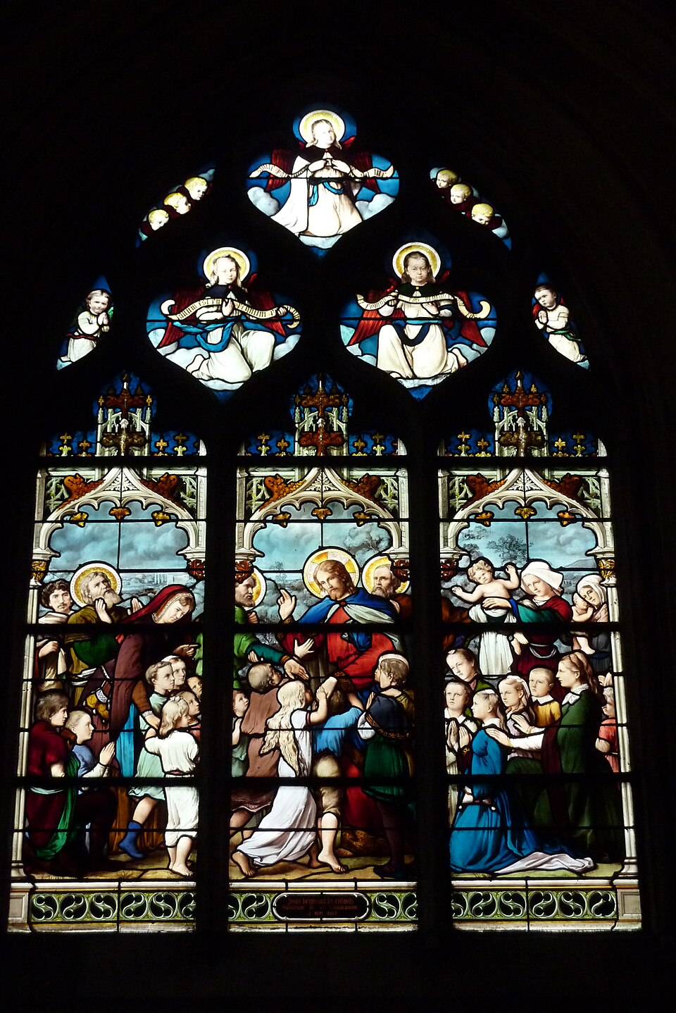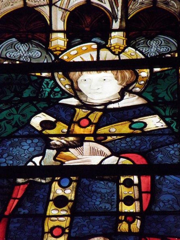 St Severin window in the Church dedicated to him in Paris and built above his Hermitage. See the full window below with Jesus and the children and St Severin top left