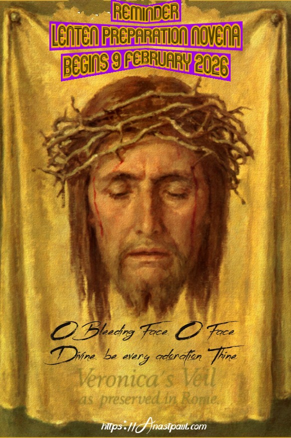REMINDER – The Lenten Preparation Novena to the Holy Face BEGINS tomorrow, 9 February