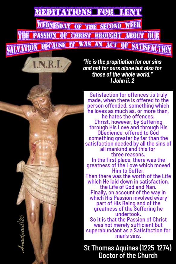 Wednesday of the Second Week of Lent – 4 March – Our Lenten Journey With St Thomas Aquinas (1225-1274) Doctor of the Church