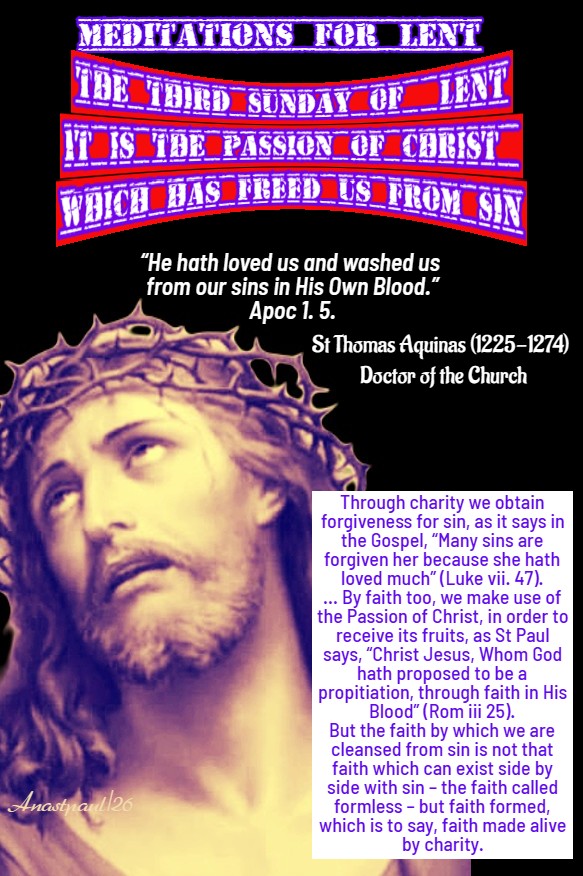 The Third Sunday of Lent – 8 March – Our Lenten Journey With St Thomas Aquinas (1225-1274) Doctor of the Church