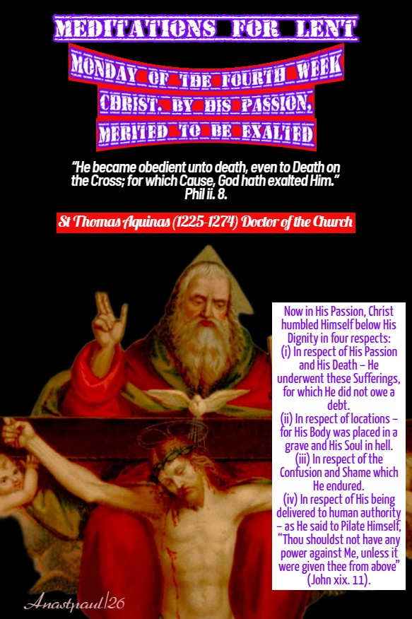 Monday of the 4th Week of Lent –16 March – Our Lenten Journey With St Thomas Aquinas (1225-1274) Doctor of the Church