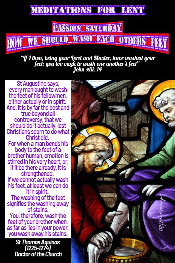 St Augustine says, every man ought to wash the feet of his fellowmen, either actually or in spirit.