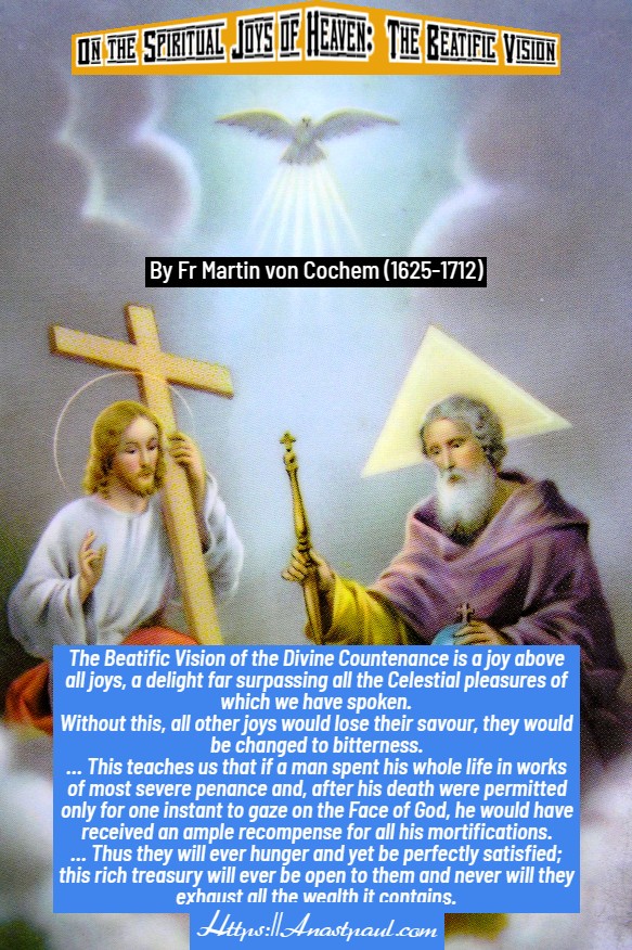 The Beatific Vision of the Divine Countenance is a joy above all joys, a delight far surpassing all the Celestial pleasures of which we have spoken.