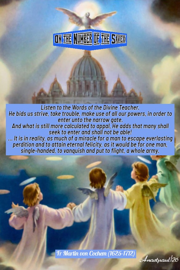 For when one of the disciples asked Him: “Lord, are they few who shall be saved?”