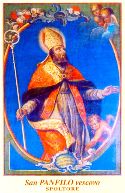 The Roman Martyrology reads today: “At Pelino, in Abruzzo, St Pamphilus, Bishop of Valva, illustrious for his charity towards the poor and the gift of miracles. His body was buried at Solmona.”