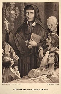 St Mary Crocifissa di Rosa (1813–1855) Religious, Foundress of the Handmaids of Charity/Sisters of Charity. She was Beatified in 1940 by Pope Pius XII and Canonised in 1954 by the same Pontiff.