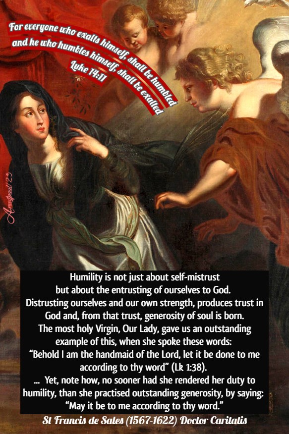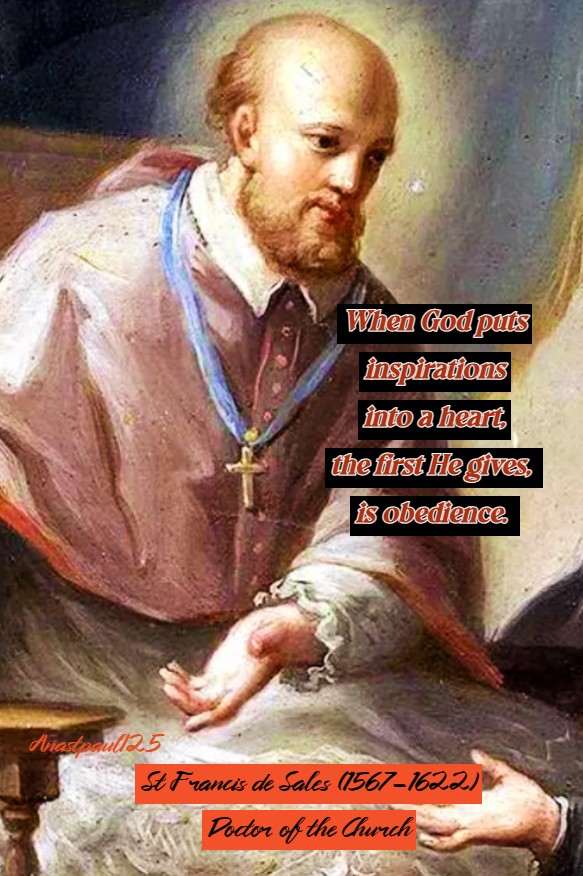 Will you do even more? … Become a servant of the poor; go to serve them … with your own hands … and at your own expense. This service has more glory in it than a throne!” – St Francis de Sales (1567-1622) Bishop of Geneva and Doctor of the Church (Introduction to the devout life, Part three Ch 15).