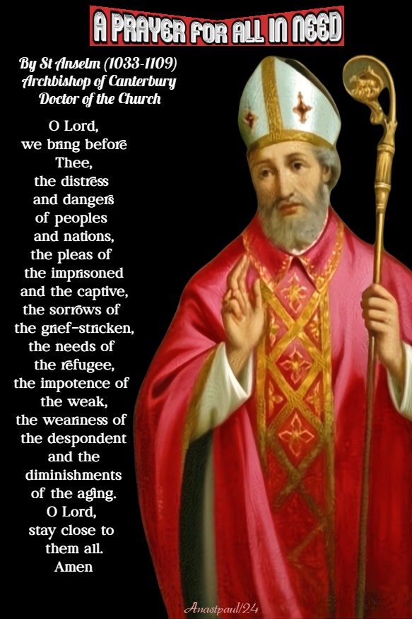 A Prayer for All in Need By St Anselm (1033-1109) Archbishop of Canterbury Doctor of the Church