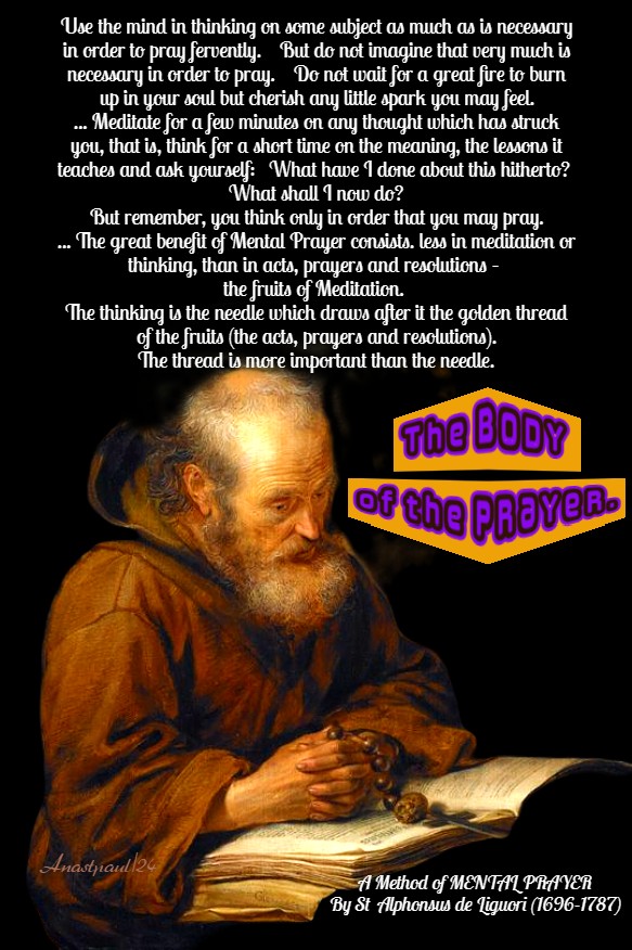A Method of MENTAL PRAYER or Meditation According to St Alphonsus. Excerpt – Part II THE BODY OF THE PRAYER.