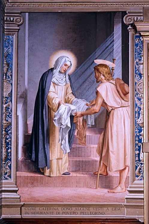 Catherine Gives her Cloak to Jesus in the Guise of a Poor Man, by Alessandro Franchi and Gaetano Marinelli