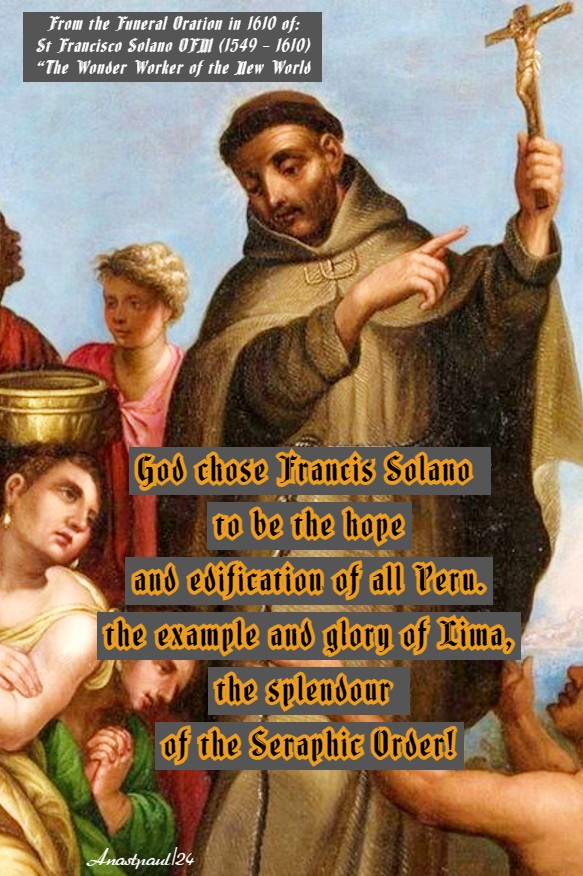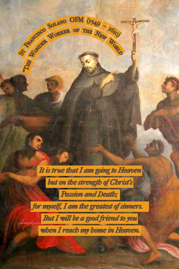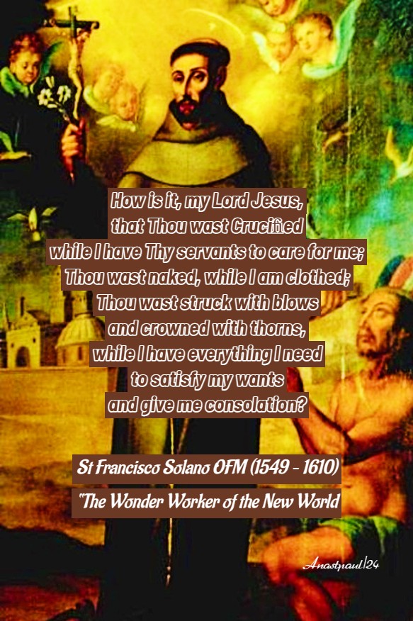 Quote/s of the Day – 24 July – “The Month of the Most Precious Blood” – St Francisco Solano OFM (1549 – 1610) “The Wonder Worker of the New World”