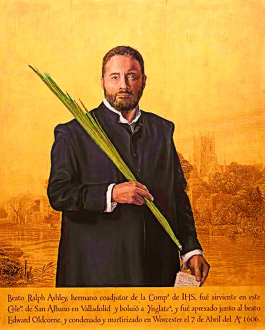 Ralph Ashley is first recorded working as a cook at the College in Douai in France. On 28 April 1590, he left for the English College, Valladolid, in Spain and became a Jesuit Lay-brother.