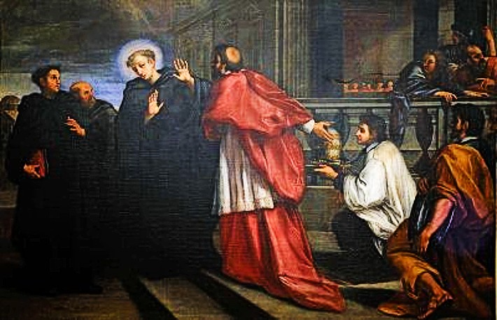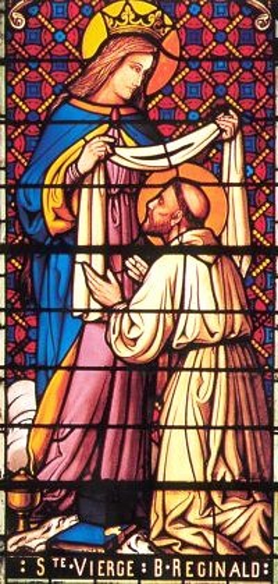 In the year 1218 Reginald was in Rome, when he fell seriously ill. As it happened, Dominic was also in Rome and a mutual acquaintance told him about the condition of Reginald, so that he went to visit him. The biographers tell us, that there was immediately, a perfect understanding between the two men – Reginald saw, that the new Dominican Friars were living the sort of ideal he had been longing for and there and then, he made his religious profession into the Order of Preachers. There was a great sign given to mark this moment of decision: as Reginald lay sick, his life in danger, he was favoured with a vision of the Blessed Virgin Mary who anointed him with oil and held out to him the Dominican habit. Blessed Reginald found himself completely cured and began with great energy to live the Dominican life.