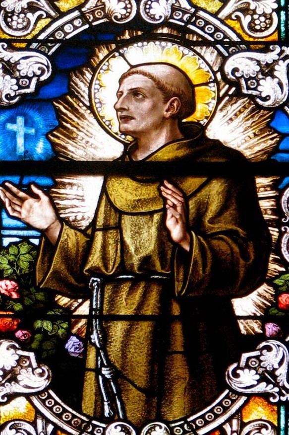 Born Giovanni di Pietro di Bernardone ( informally called Francesco by his Mother) – (1181 at Assisi, Umbria, Italy – 4 October 1226 at Portiuncula, Italy of natural causes). His relics are enshrined in the Basilica built and named for him in Assisi, Italy. St Francis was Canonised on 16 July 1228 by Pope Gregory IX. Patronages – • against dying alone• against fire• animal welfare societies• animals• birds• ecologists, ecology• environment, environmentalism, environmentalists• families• lace makers, lace workers• merchants• needle workers• peace• tapestry workers• zoos• Italy• Colorado• Catholic Action• Franciscan Order• 10 dioceses• 10 cities. Attributes – • apparition of Jesus• Christ child• birds• deer• fish• lamb• skull• stigmata• wolf. In 1224 he received the stigmata during the apparition of Seraphic angels in a religious ecstasy making him the first recorded person in Christian history to bear the wounds of Christ’s Passion. He died during the evening hours of 3 October 1226, while listening to a reading he had requested of Psalm 142 (141). Francis is one of the most venerated religious figures in history.