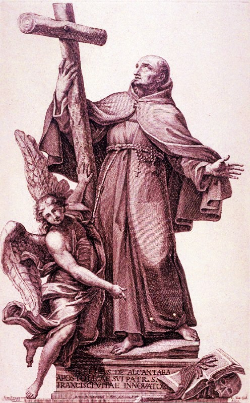 Into all those, over whom he had the slightest influence, he endeavoured to instill a tender devotion to our Crucified Lord, as well as to the Most Holy Trinity and to the Blessed Eucharist. His language to sinners was so forcible that he converted even the most hardened. He was much aided in this by the gift which the Almighty had bestowed upon him, of reading the thoughts of the heart. Many who came to him were reproached with their secret sins and admonished to reform their lives. He possessed also the gifts of prophecy, of driving out devils and curing all kinds of diseases. Besides this, he had many visions of the Blessed Virgin, St Joseph, St John and Christ the Lord. Especially remarkable, were the heavenly favours, with which this great servant of the Almighty was comforted, during an imprisonment of nine months, to which he was unjustly condemned. Christ appeared to him and said: “Behold! John, I am here! Fear not. I will rescue thee!” The Blessed Virgin, accompanied by a great many Saints, appeared to him and said: “My son, be patient and endure, for your trials will soon give way to joy.” In another vision, she admonished him to escape from the prison, promising him her assistance, a promise which she also kept. St Teresa, who, during her life, had been closely united with him, appeared also to him after her death, speaking to him most kindly. In his adversity she comforted him, and encouraged him to new labours for the honour of God.