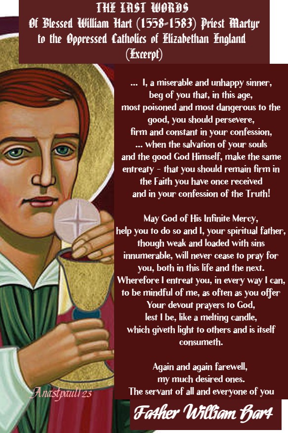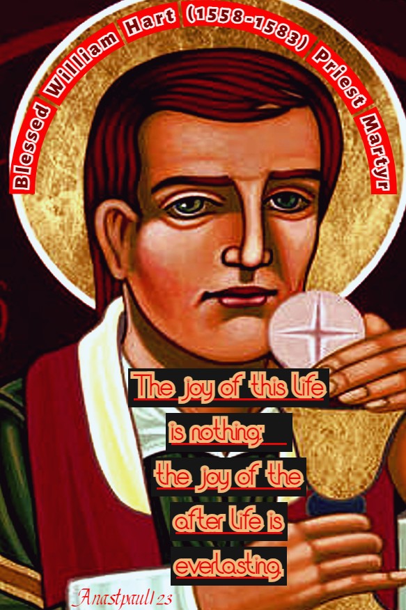 Quote/s of the Day – 15 March – The Memorial of Blessed William Hart (1558-1583) Priest Martyr (Hung, drawn and quartered today in 1583 by the Persecutions of Elizabeth I. He was aged 25 years old).