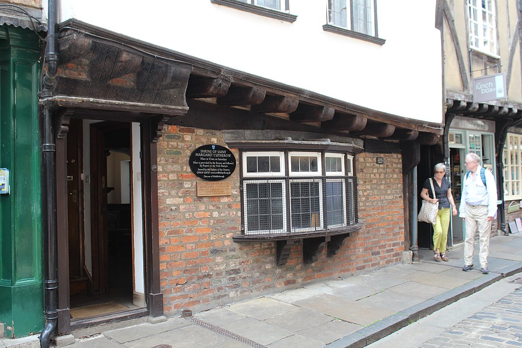 In 1571, she married John Clitherow, a wealthy butcher and a chamberlain of the City and bore him three children. The family lived at today’s renowned tourist destination, “The Shambles” – their business was Nos 35–36, which is now St Margaret’s Shrine..