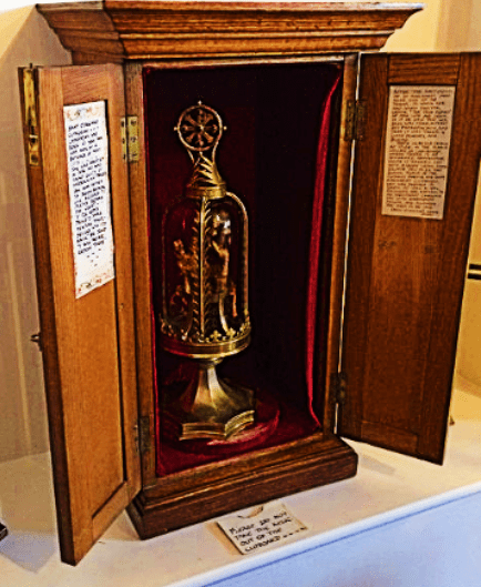 An arm is enshrined in the Chapel of Our Lady of the Assumption at St Edmund’s Retreat on Enders Island off the coast of Mystic, Connecticut. The retreat is operated by the Society of the Fathers and Brothers of St Edmund.