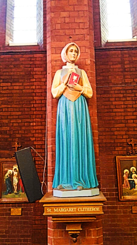 Margaret converted to Catholicism in 1574. Although her husband, John belonged to the Established Church, he was supportive of his wife and of his brother William, who was a Catholic Priest. He paid the fines Margaret received for not attending the heretical church services. She was first imprisoned in 1577 for failing to attend and two further incarcerations at York Castle followed. Her third child, William, was born in prison!