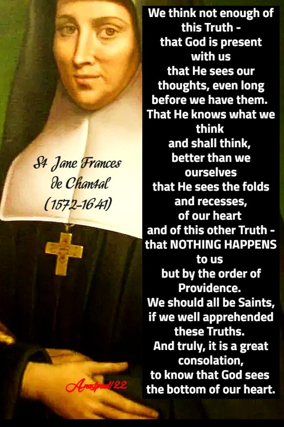 The final cause [goal] of prayer, then, ought not to be to desire those tendernesses and consolations which our Lord sometimes gives, since union does not consist in that but rather, in conforming to the will of God.” (Sermon for the Third Sunday of Lent, given on 22 March 1615).