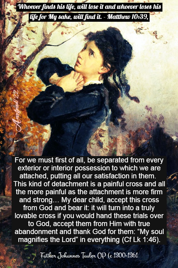 Accordingly,, all perfection is contained therein, as Brother Giles, the companion of St Francis [of Assisi] said, when a certain person asked him what he could do in order to be perfect very soon. “Give,” he replied, “one to One.” That is to say, you have only one soul and there is only God – give your soul to Him and He will give Himself to you.