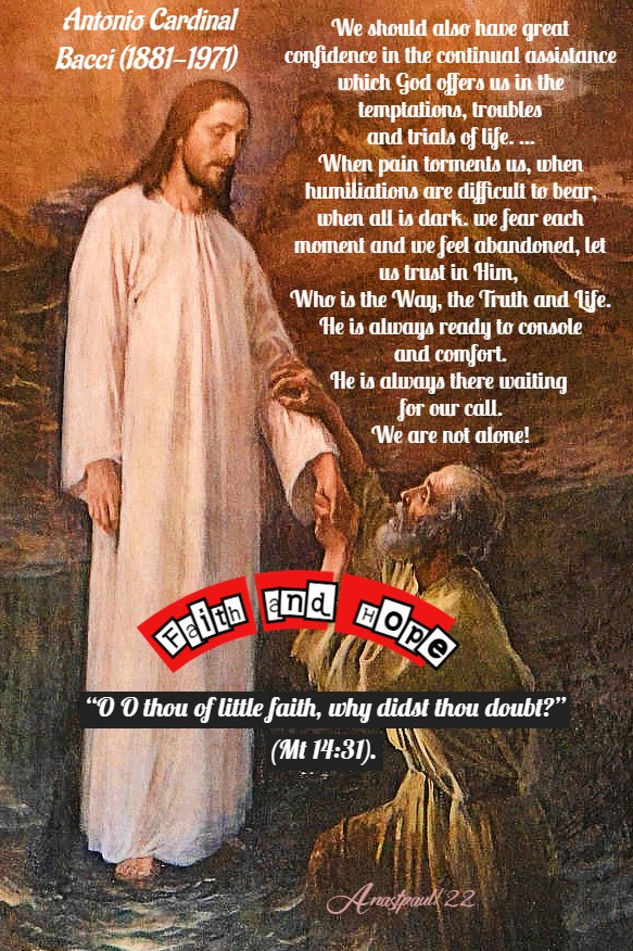 Some have grave temptations concerning faith and Sacraments which are not to be imputed to them but rather, to the enemy. Take no notice, do not argue with your thoughts, nor answer the doubts with which the devil attacks you; believe God’s Word, believe His Saints and Prophets and the wicked enemy will be routed. It is often most profitable to God’s servant, to endure such things. For the devil does not tempt the infidel or sinner, of whom he has already secure possession but, he uses various means, to tempt and harass the devout faithful.