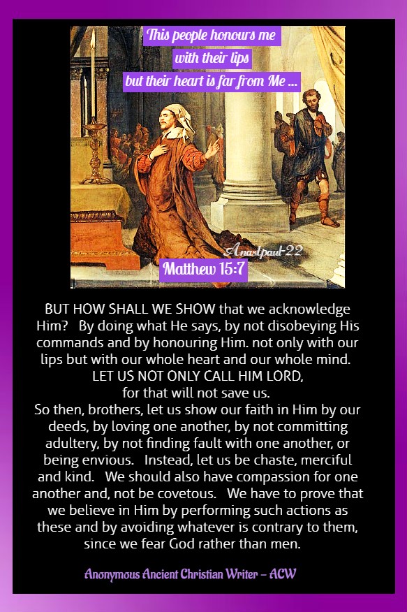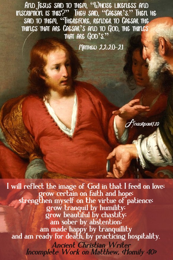 Now, all this is not being written as a warning to you alone, my dear friends but, for a reminder to ourselves too because, we also, are in the same arena and have the same conflict before ourselves. So let us be done with these barren and empty fancies and turn instead, to the honourable, holy rule of our tradition, so that we may find out what is good and pleasing and acceptable, in the Sight of Him Who made us. Let us fix our thoughts on the Blood of Christ and reflect how precious that Blood is in God’s Eyes, inasmuch as Its outpouring for our salvation, has opened the grace of repentance to all mankind.” – St Pope Clement I (c35-c101) – Pope from c88 to 101, Father (Letter to the Corinthians 5-7).