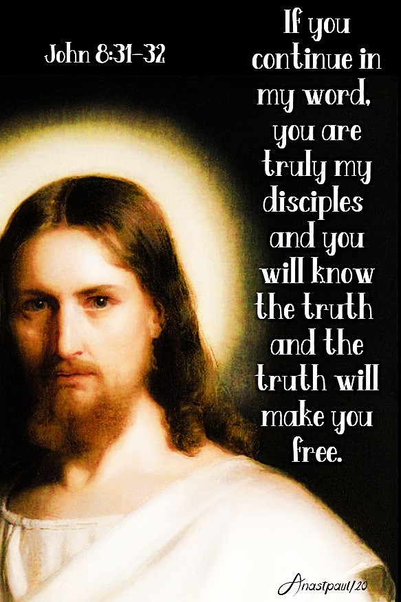 “If you continue in my word, you are truly my disciples and you will know the truth and the truth will make you free.”...John 8:31-32