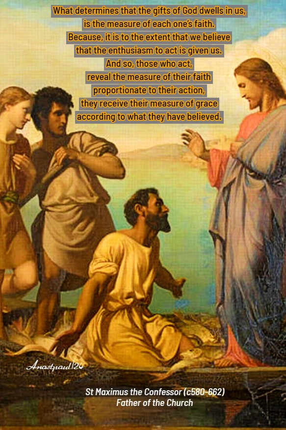 “What determines that the gifts of God dwells in us, is the measure of each one’s faith. Because, it is to the extent that we believe that the enthusiasm to act is given us. And so, those who act, reveal the measure of their faith proportionate to their action, they receive their measure of grace according to what they have believed. …”