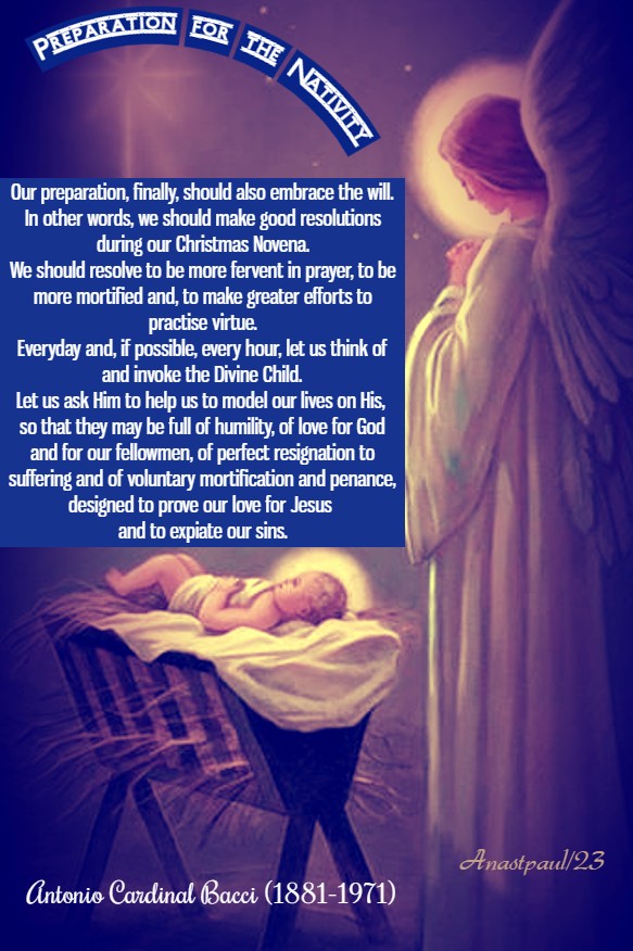 “Our preparation, finally, should also embrace the will. In other words, we should make good resolutions during our Christmas Novena. We should resolve to be more fervent in prayer, to be more mortified and, to make greater efforts to practise virtue.