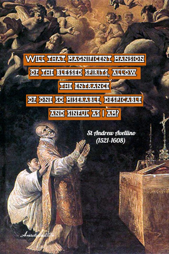 Quote/s of the Day – 10 November – St Andrew Avellino CR (1521–1608) Confessor, Patron against sudden death/of a Holy Death, against Apoplexy or Strokes.