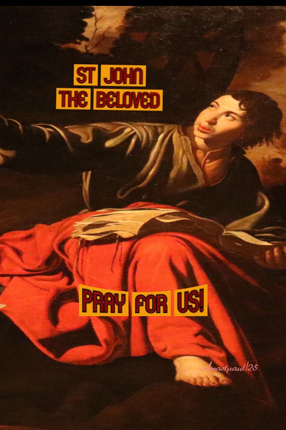 PRAYER – O God, Who sees that sins and sufferings do, on every side rise up to trouble us, grant, we beseech Thee, that we may find a shield in times of need, through the glorious intercession of Thy blessed Apostle and Evangelist beloved Saint John. Through Jesus Christ, Thy Son our Lord, Who lives and reigns with Thee, in the unity of the Holy Ghost, God, world without end. Amen (Collect).