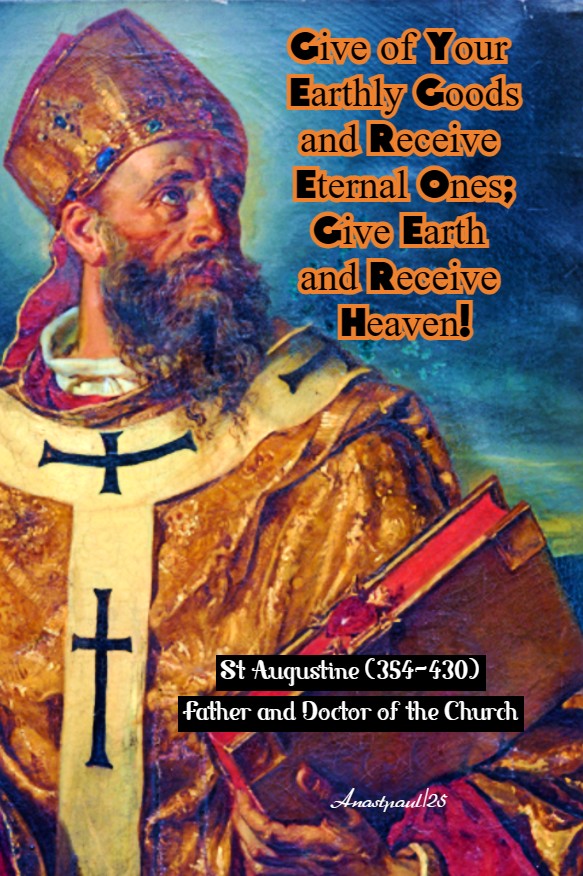 Thus, we ought to be ready to forgive all the wrongs done to us, if we wish God to forgive us too. Truly, if we consider our sins and think over the offences we have committed, I do not know how we can sleep, without feeling the burden of our debt weighing down upon us! And this is why we make our requests to God each day. Each day our prayers strike His ears; each day we prostrate ourselves, saying: “Forgive us our debts, as we ourselves forgive those who are in debt to us.” Which of your debts would you like to have remitted? All of them or only some? You are going to reply – All! So do the same for your debtor then!” – St Augustine (354-430) Father and Doctor of Grace (Sermon 83).
