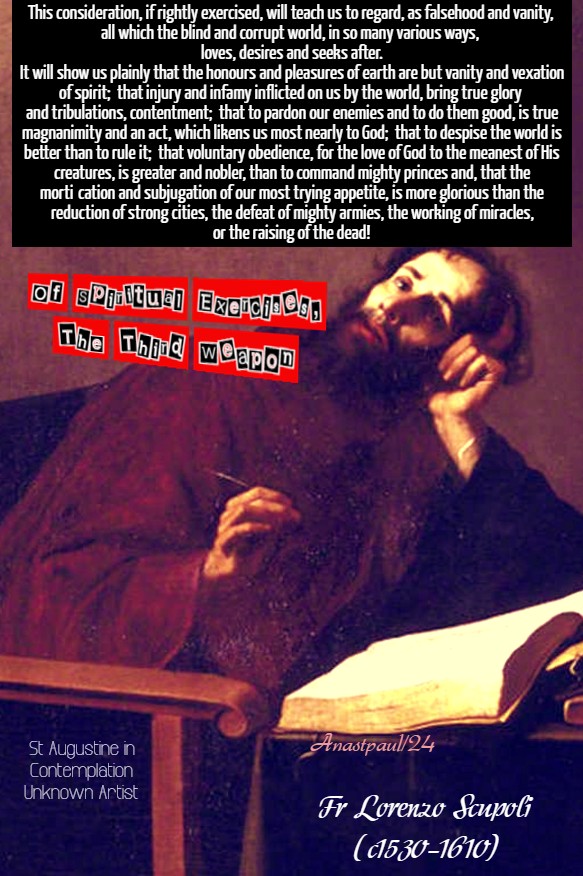 Some have grave temptations concerning faith and Sacraments which are not to be imputed to them but rather, to the enemy. Take no notice, do not argue with your thoughts, nor answer the doubts with which the devil attacks you; believe God’s Word, believe His Saints and Prophets and the wicked enemy will be routed. It is often most profitable to God’s servant, to endure such things. For the devil does not tempt the infidel or sinner, of whom he has already secure possession but, he uses various means, to tempt and harass the devout faithful.