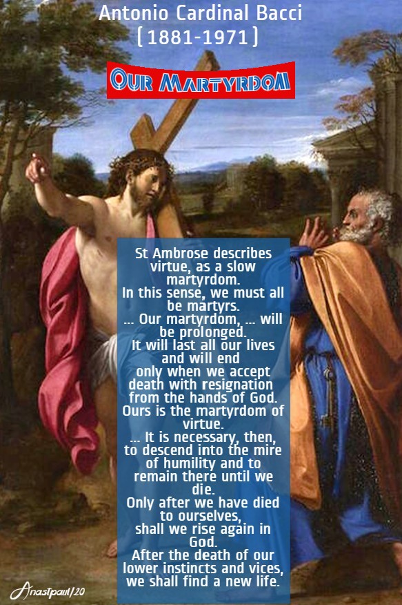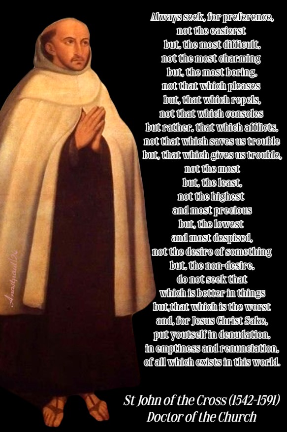 REFLECTION – “Humility is not just about self-mistrust but about the entrusting of ourselves to God. Distrusting ourselves and our own strength, produces trust in God and, from that trust, generosity of soul is born. The most holy Virgin, Our Lady, gave us an outstanding example of this, when she spoke these words: “Behold I am the handmaid of the Lord, let it be done to me according to thy word” (Lk 1:38). When she said she was the handmaid of the Lord, she was performing, the greatest act of humility, it is possible to do and, all the more so, in that, she was contradicting the praise given her by the Angel – that she would be mother of God, that the child to be born from her womb would be called Son of the Most High, a greater dignity than any we might imagine – I say, she opposed her lowliness and unworthines,to all these praises and greatness, by saying that she was the handmaid of the Lord. Yet, note how, no sooner had she rendered her duty to humility, than she practised outstanding generosity, by saying: “May it be to me according to thy word.”